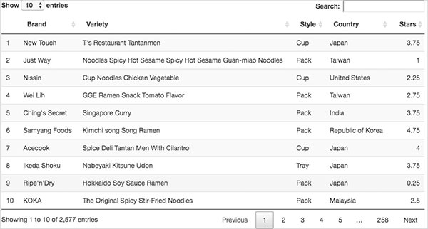 Shiny typically has a nice format for displaying tables, but the DT package adds extra functionality such as filtering, pagination, sorting and more. We’ll use DT to make those additional features available to our users.