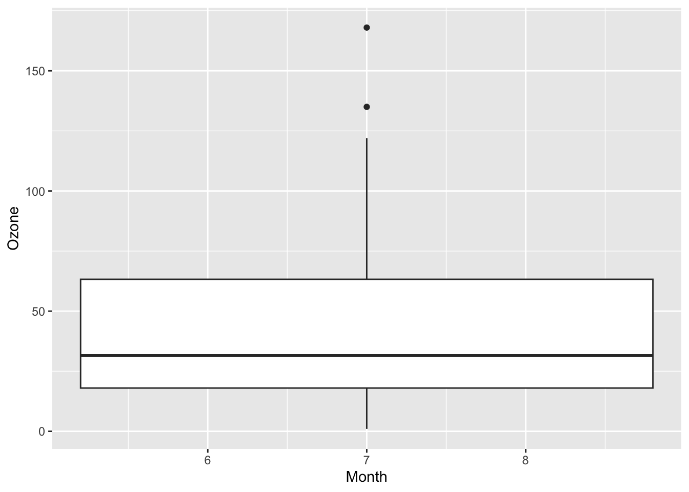 ggplot(airquality, aes(x = Month, y = Ozone, group=Month)) +