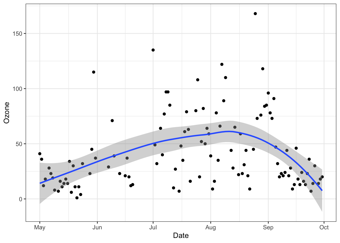 ggplot(airquality, aes(x=Date, y=Ozone)) +