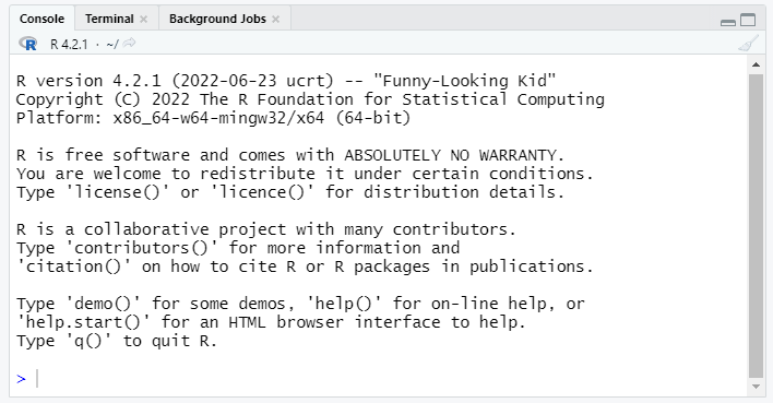 The console pane allows immediate execution of R code. This pane can be used to experiment with new functions and execute one-off commands, like printing sample data or exploratory plots.