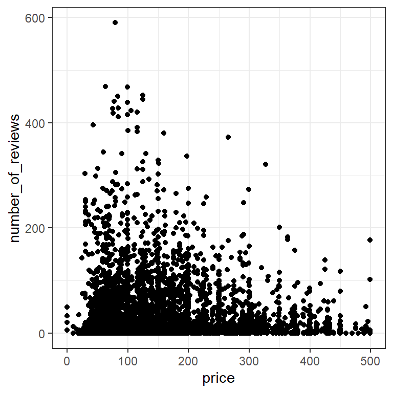 For comparison, let’s zoom in on the grid where both price and number of reviews are less than 100: