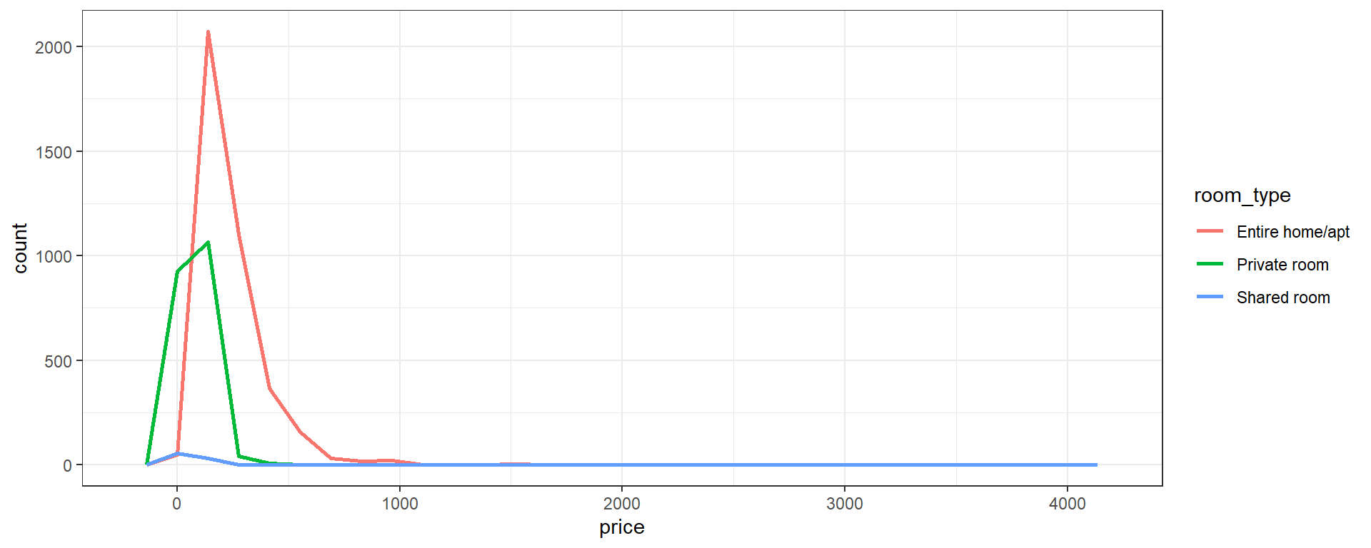 ggplot(data=listings,aes(x=price,color=room_type))+